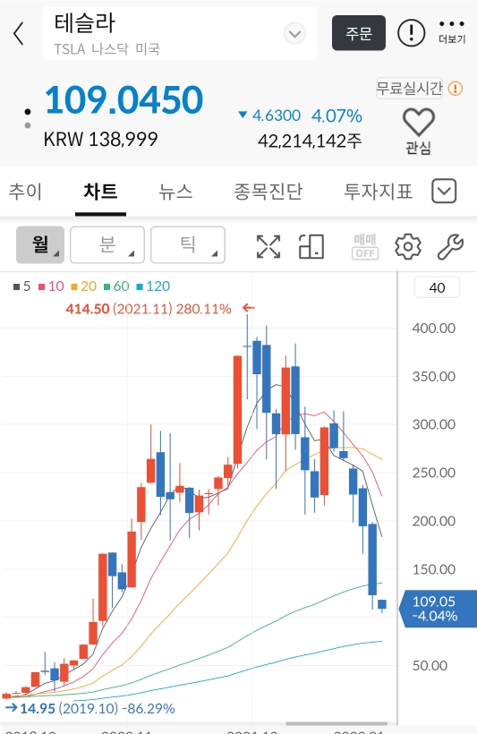 지금 이제서야 정상적인PER 30으로 떨어진 테슬라다.