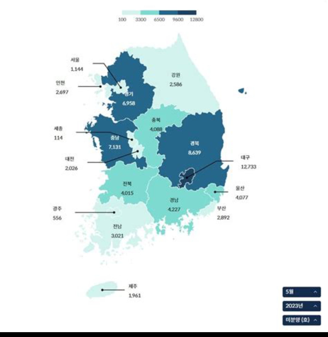 심지어 다 지어놓고도 안 팔리는 '준공 후 미분양'도 2만 3천 가구 가까이 됩니다.