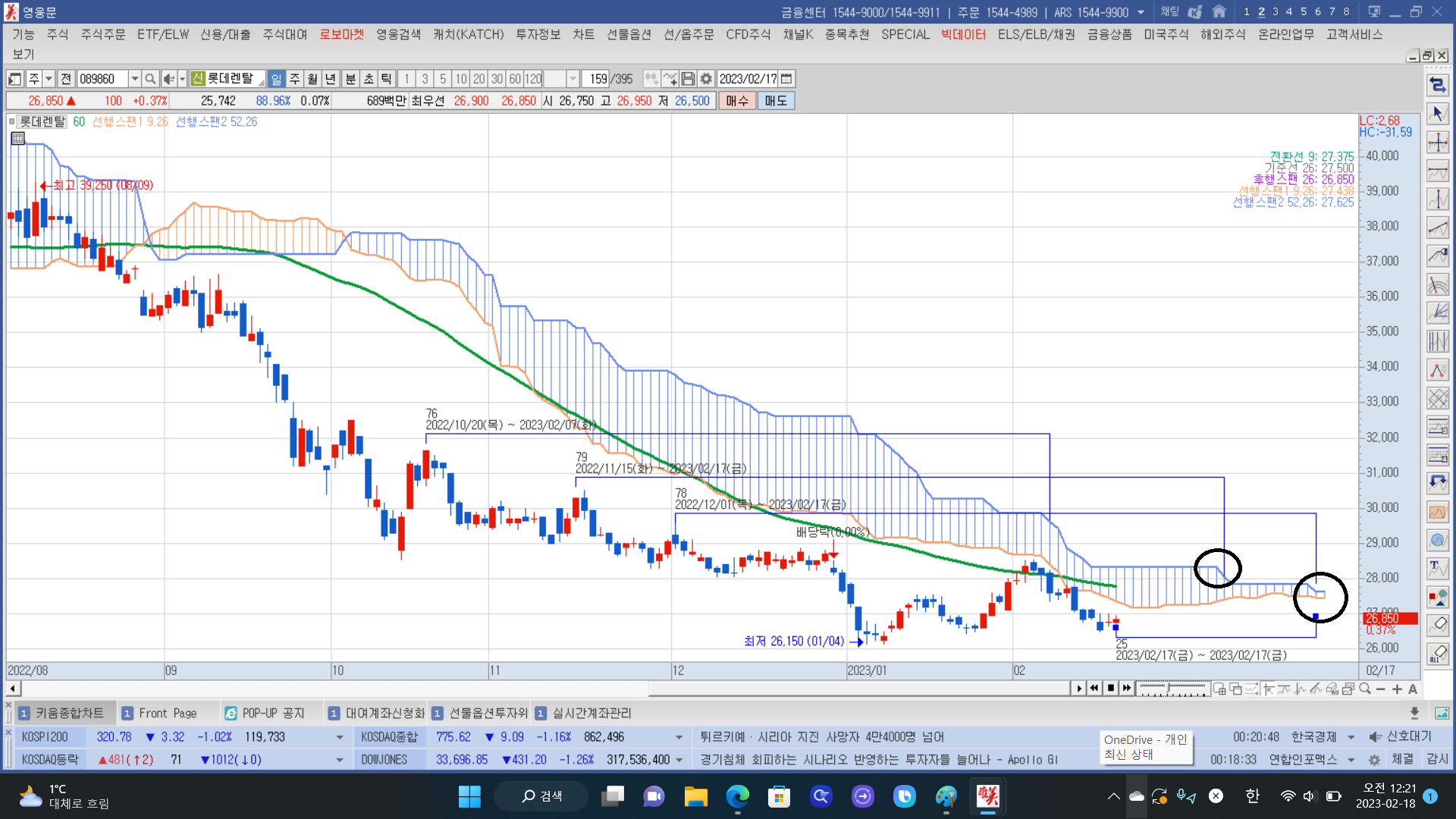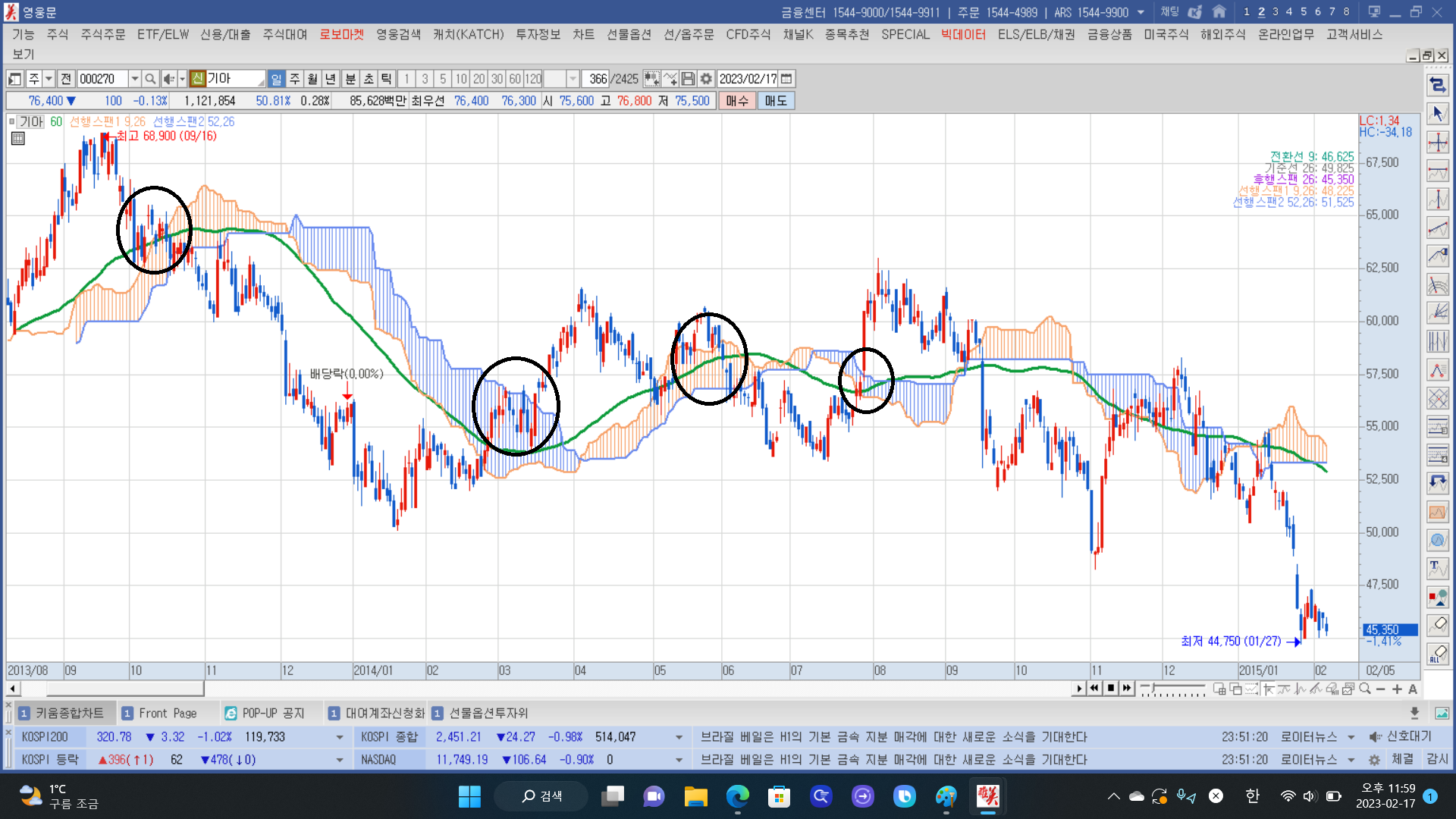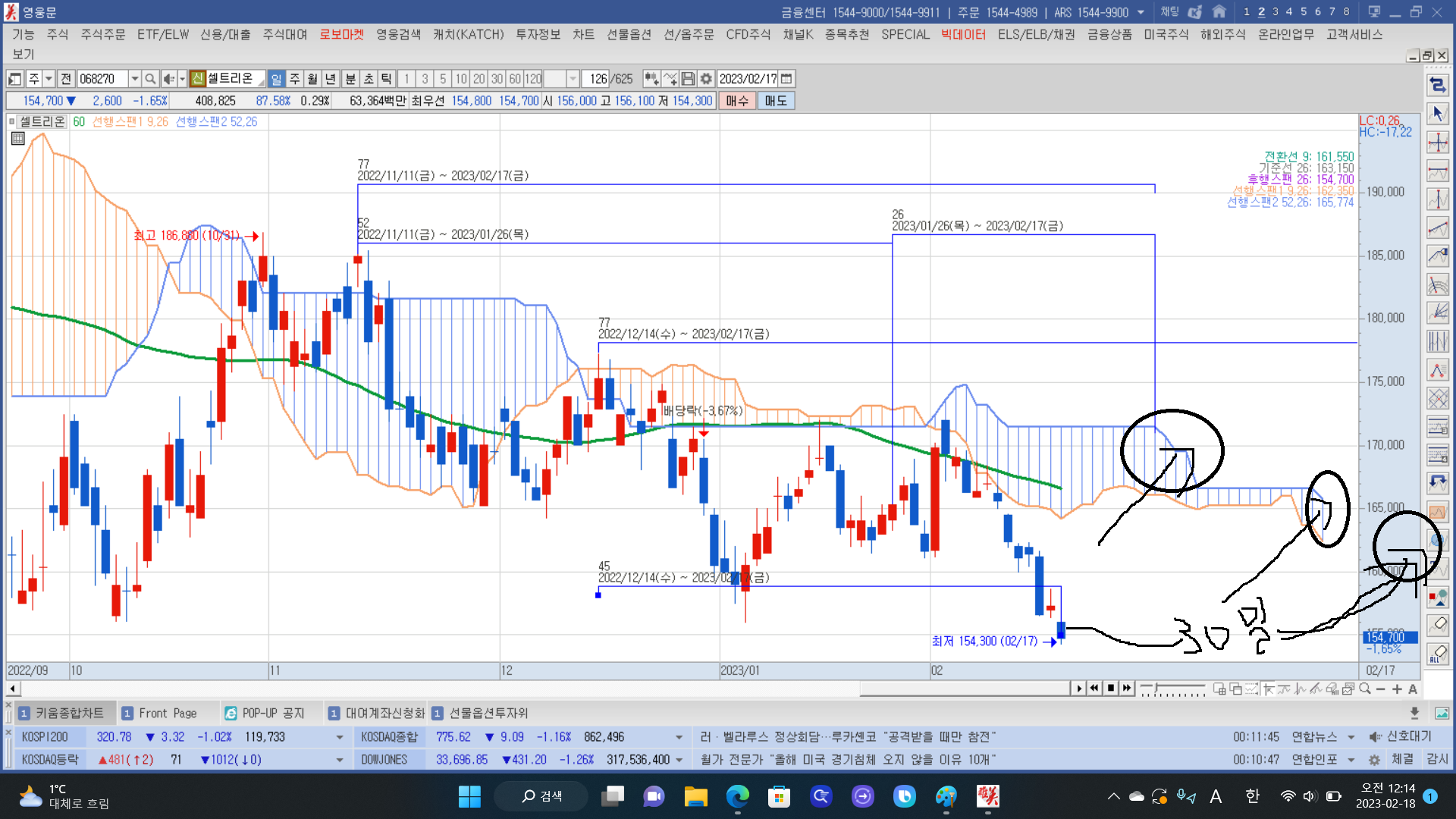 이렇게 내주식의 앞에 나오는 구름을보고 주식이 어디로 상승할수있는가를 예측할수있으니,