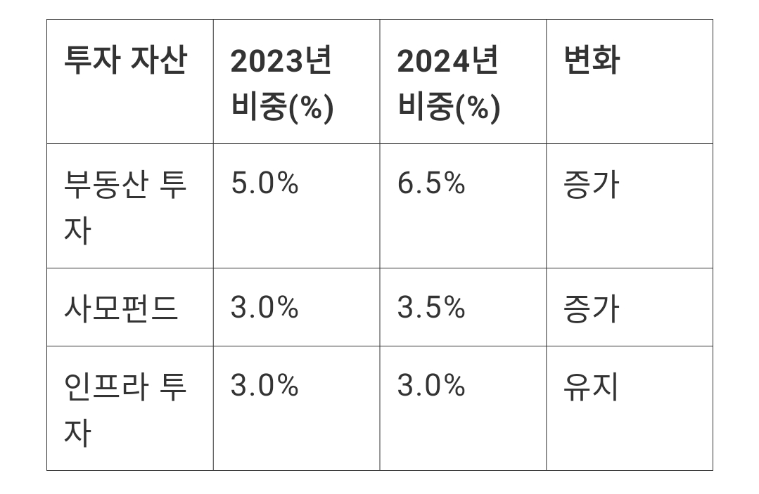 국민연금은 부동산, 사모펀드, 인프라 투자 비중을 늘리고 있어요.