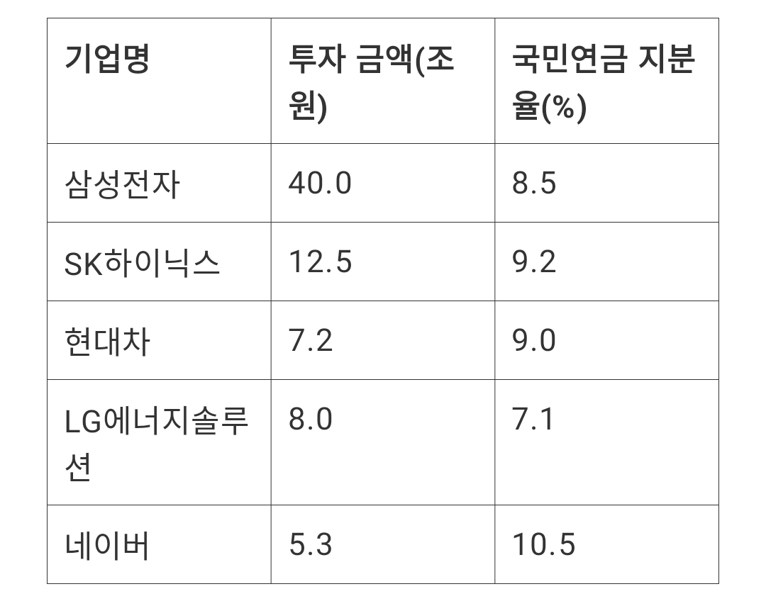 국민연금은 한국을 대표하는 대기업들에 투자하고 있어요.