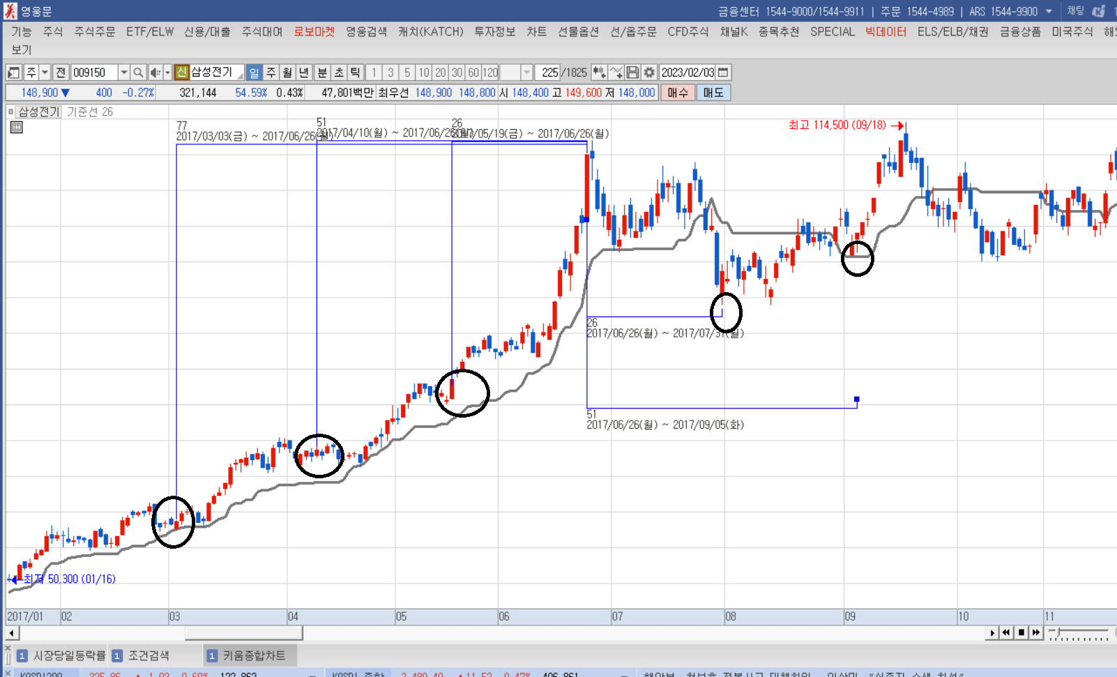 뒷날 26, 51일도 변곡임을 확인할수있다.