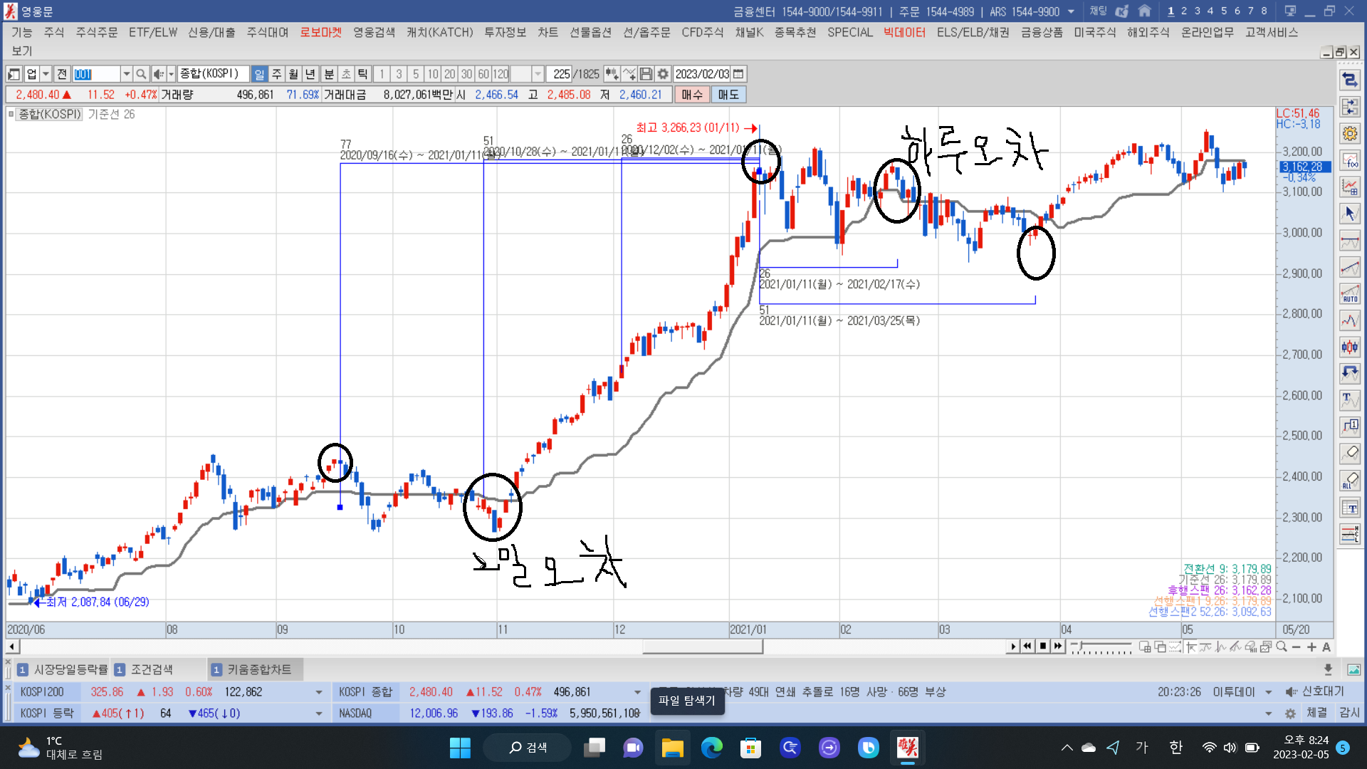 변곡이 큰 캔들의 중심으로 앞날26일, 51일이 변곡이니