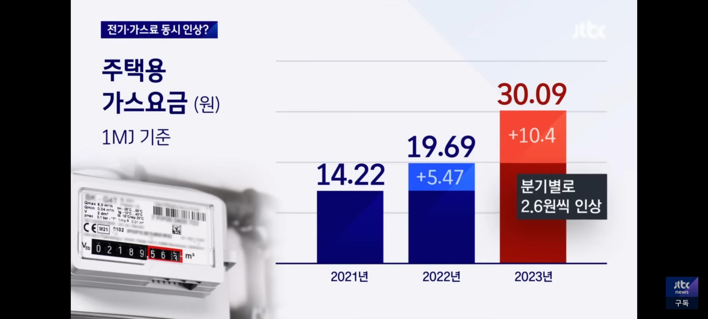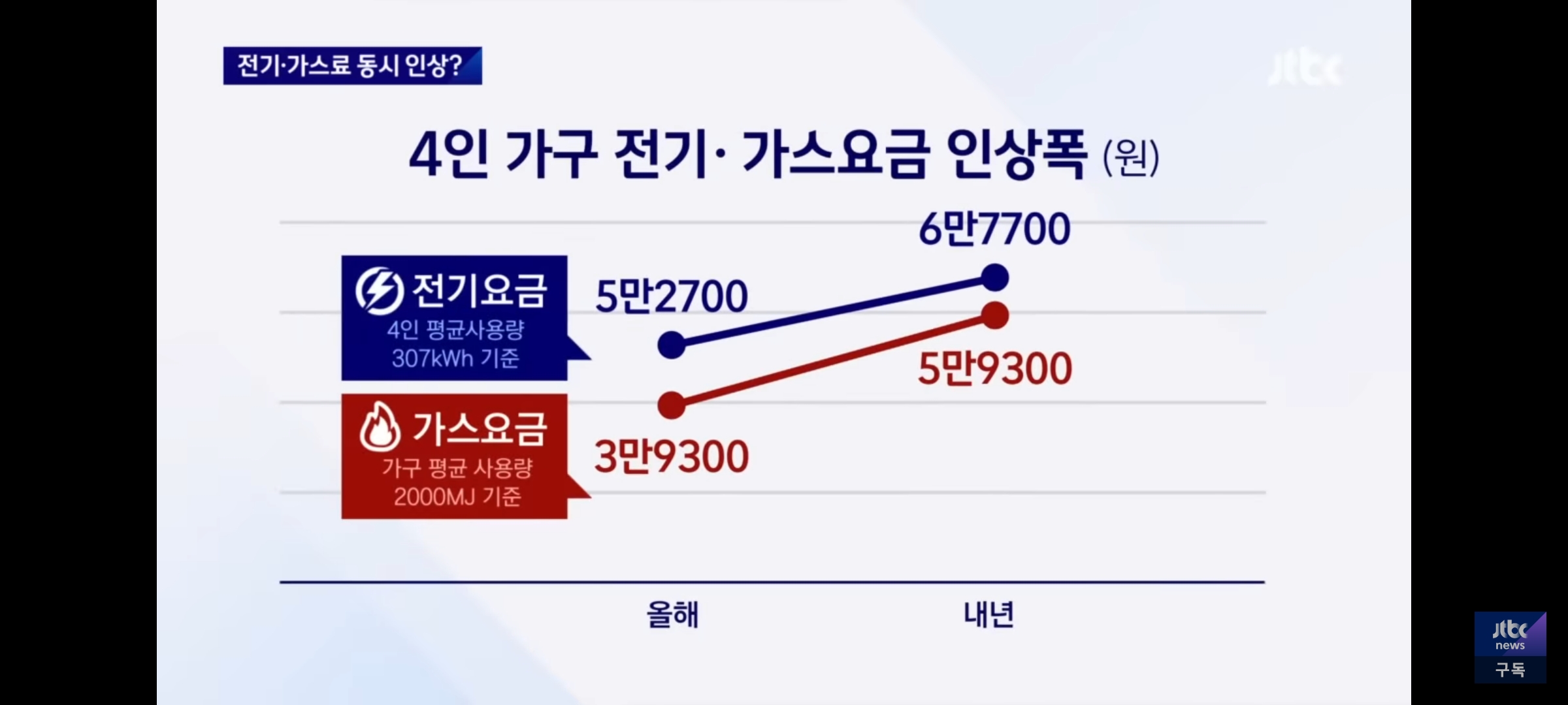 국회에서 법안이 통과하여. 전기료와 가스가 인상하게된다.