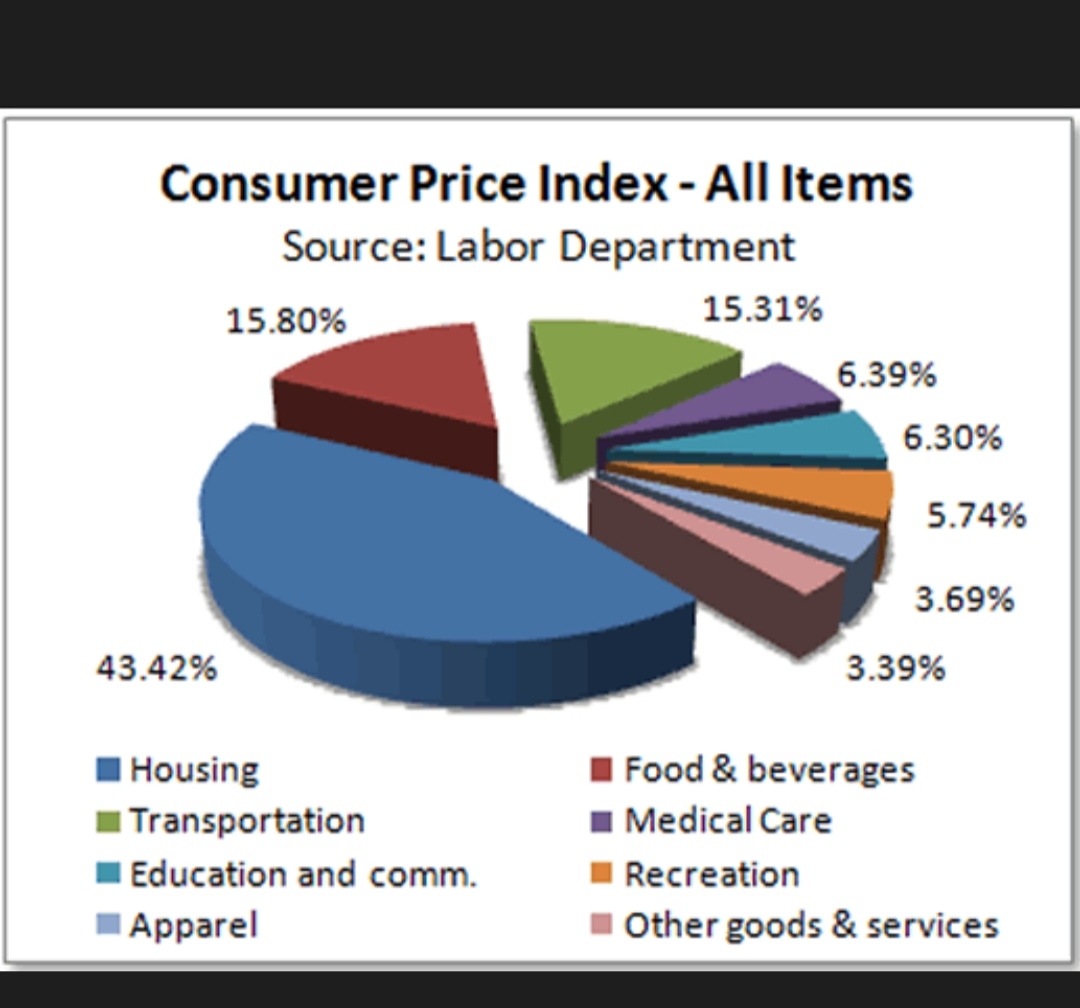 즉, 한달동안 혹은 1년동안의 부동산, 음식, 의류비, 병원비, 교통비등의 가격의 상승을 그래프로 표현한것이다.