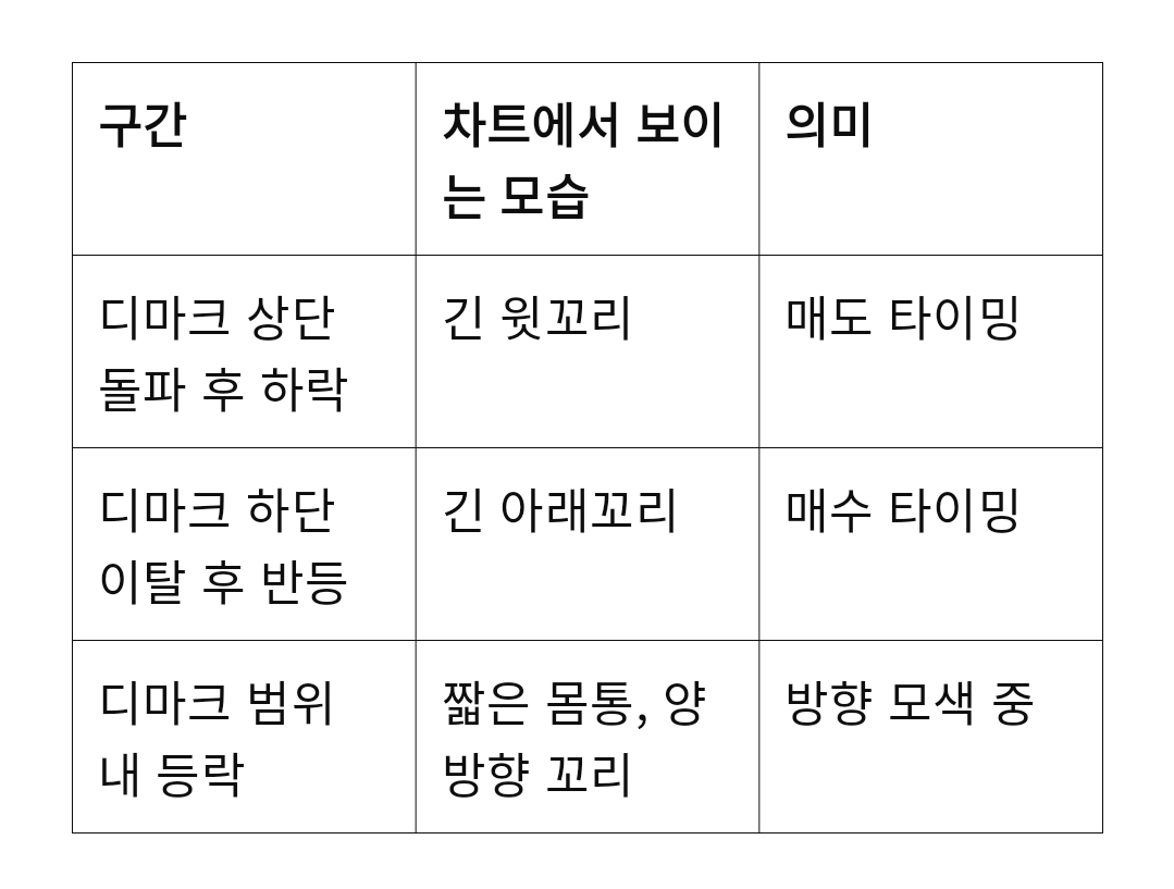 주가가 디마크 범위 밖으로 잠깐 이탈했다가 다시 들어오는 경우가 많죠.