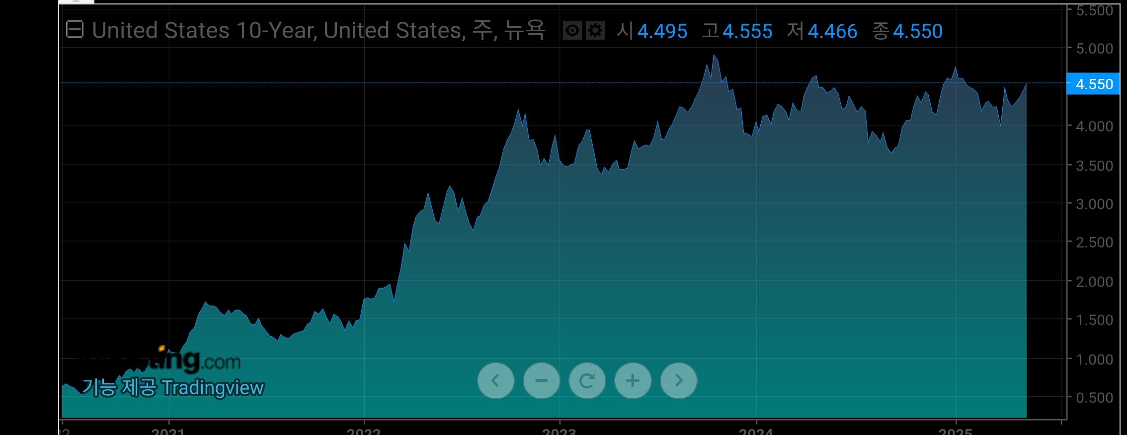 2025년 5월, 미국 10년물 국채 수익률이 다시 4.5%를 돌파했습니다.