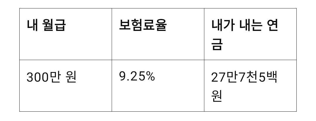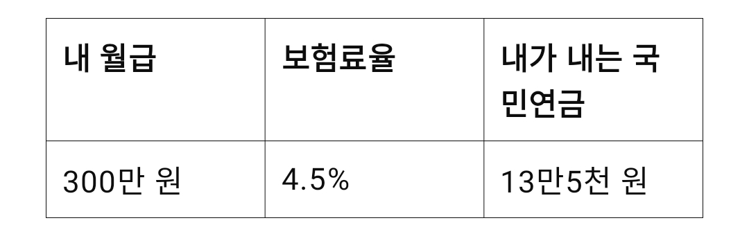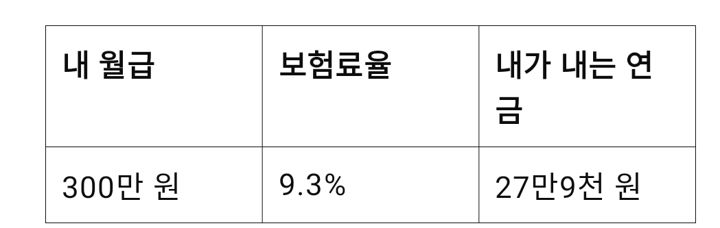 보험료율: 월급의 9% (직장인: 본인 4.5%, 회사 4.5%)