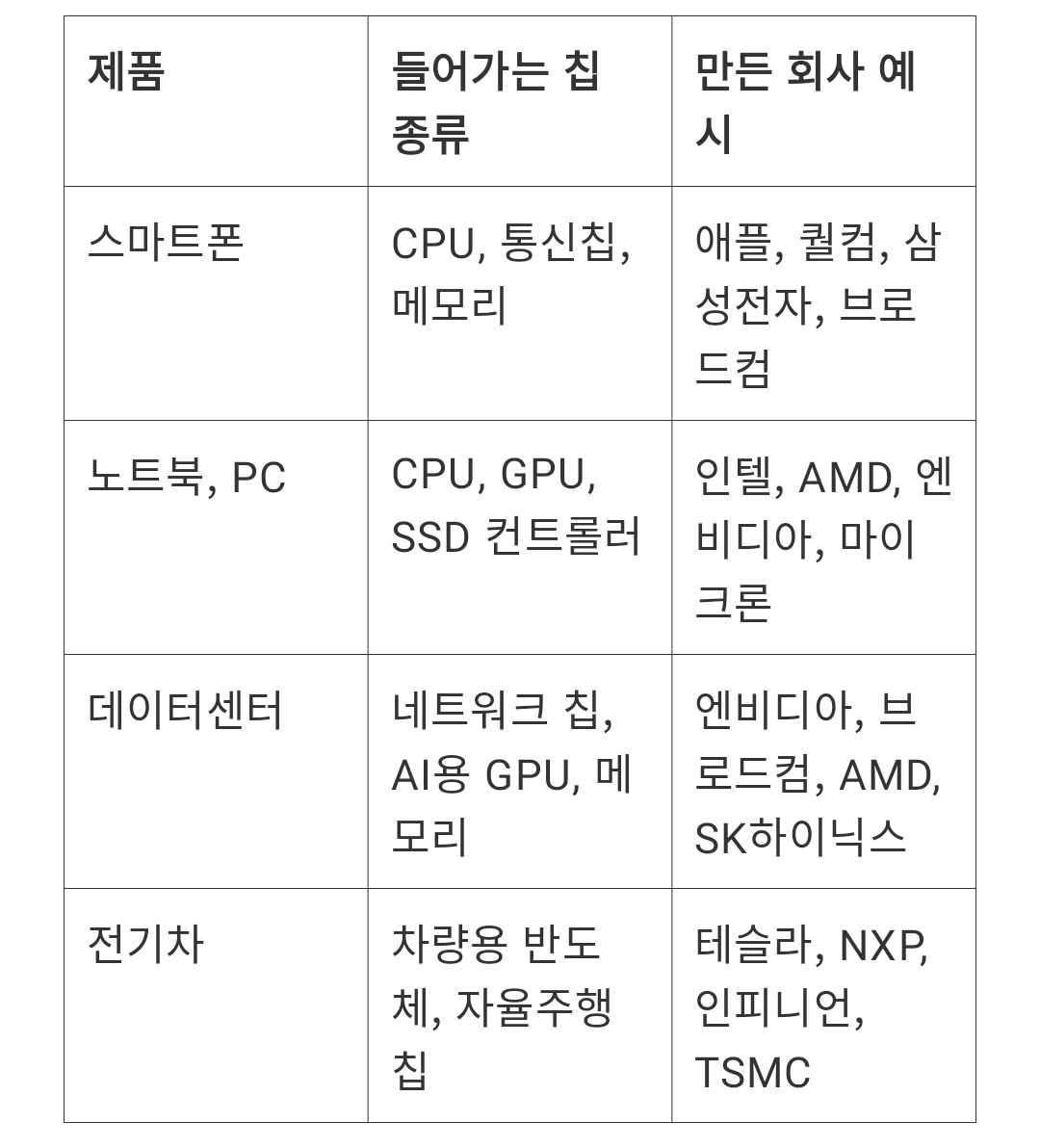 왜 중요? → AI, 전기차, 스마트폰, 클라우드 전부 칩 없으면 못 돌아감