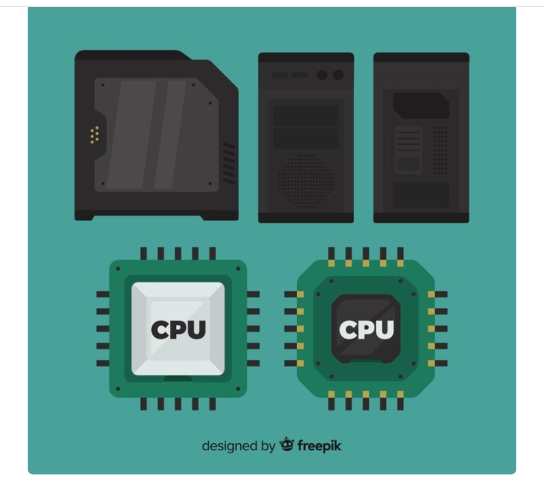 CPU, GPU, 메모리, 통신 칩 같은 전자부품입니다.