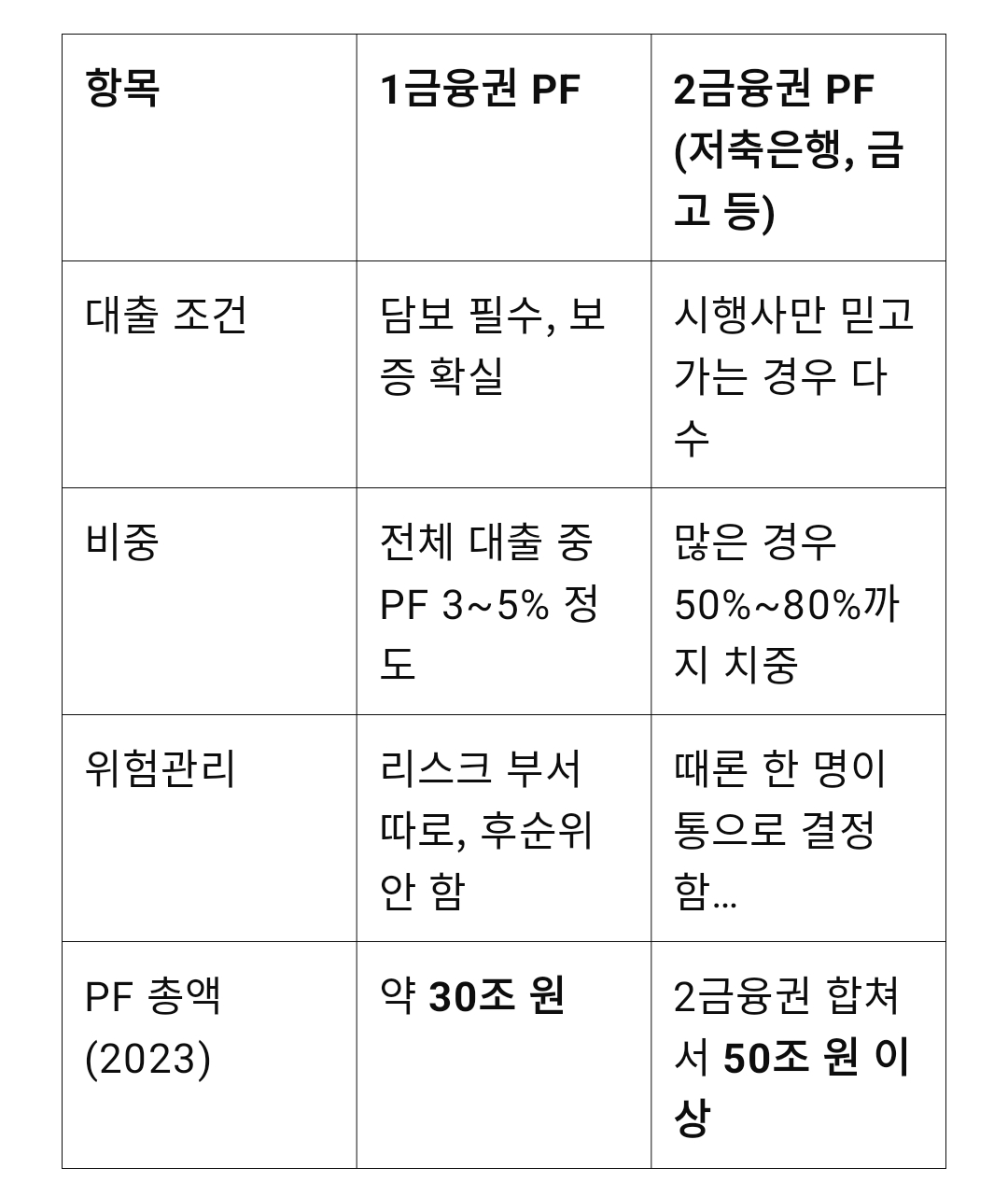 국민은행, 신한은행, 하나은행 같은 1금융권도 PF 해요.