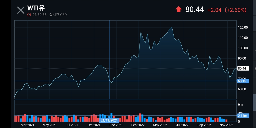 이번년도 유가는 60베럴선에서 120베럴 거의 2배나 뛰는 양상을 보여줬다가 다시 제자리를 찾아가고있다.