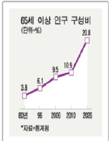 65세 이상이 전체의 7% 이상이면 고령화사회, 14% 이상 고령사회, 20% 이상 초고령사회