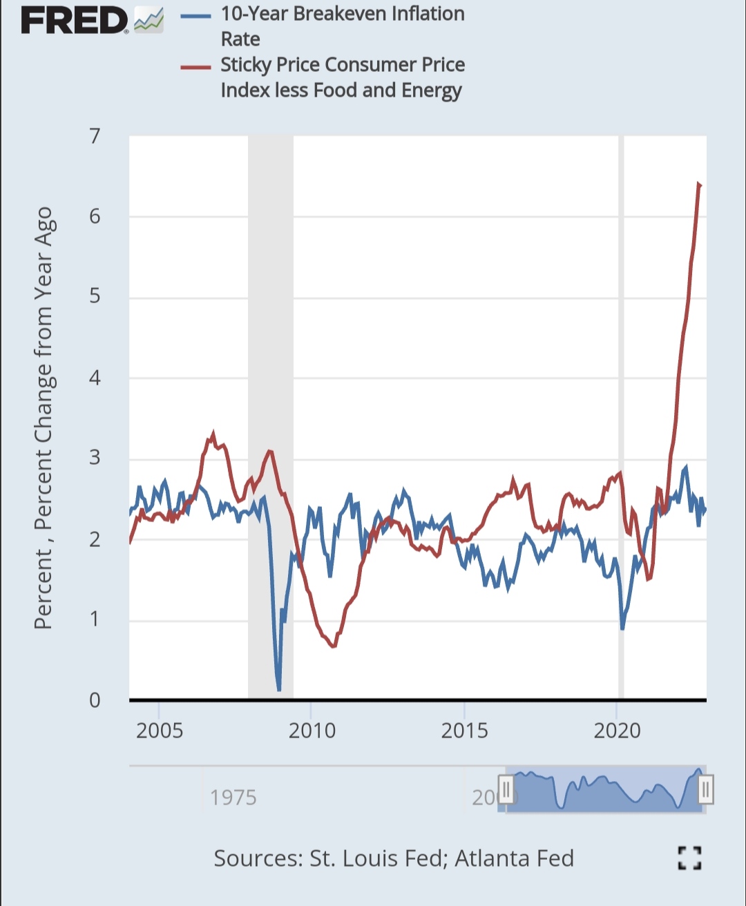 2008년 부동산 리만사태때 bei가 급격히 떨어지고 그리고 cpi도 따라서 떨어진걸볼수있고