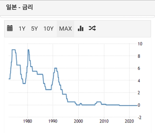 일본 기준금리는 1995년 부터 기준금리가 1% 가 안된다. 현재는 -0.1%