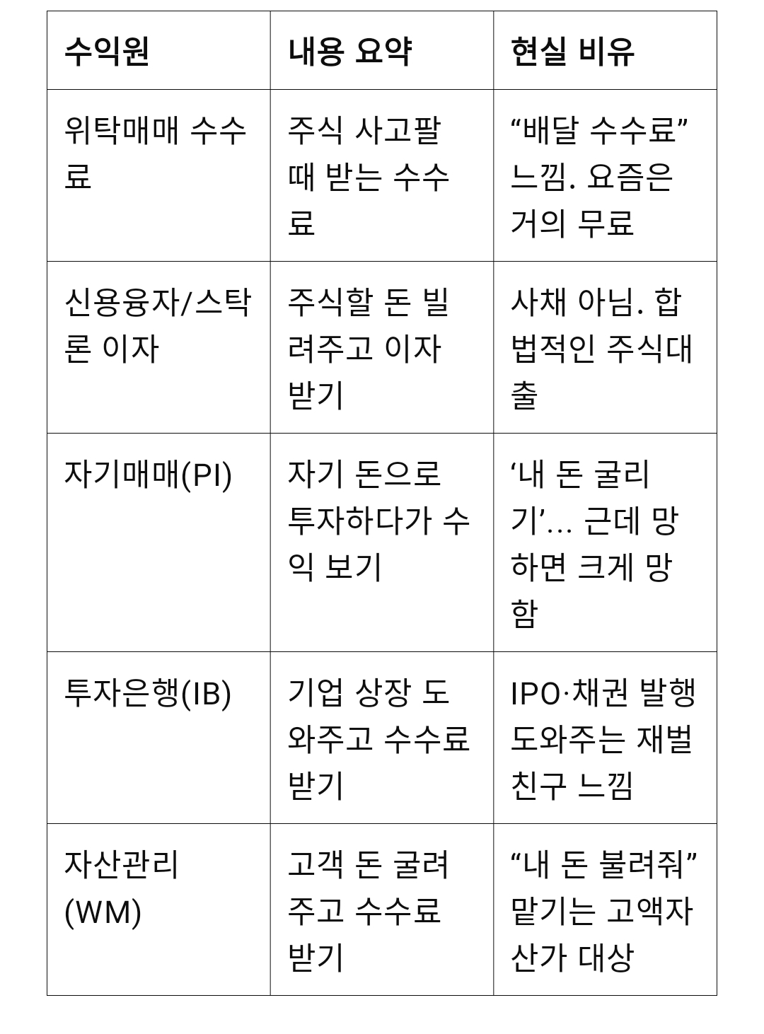 증권사의 주요 수익원