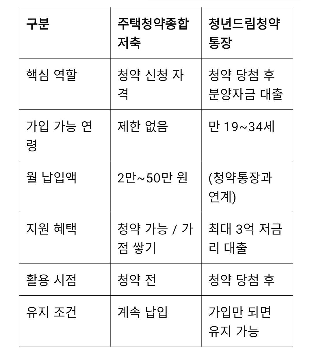 한눈에 정리: 청약통장 vs 청년드림청약