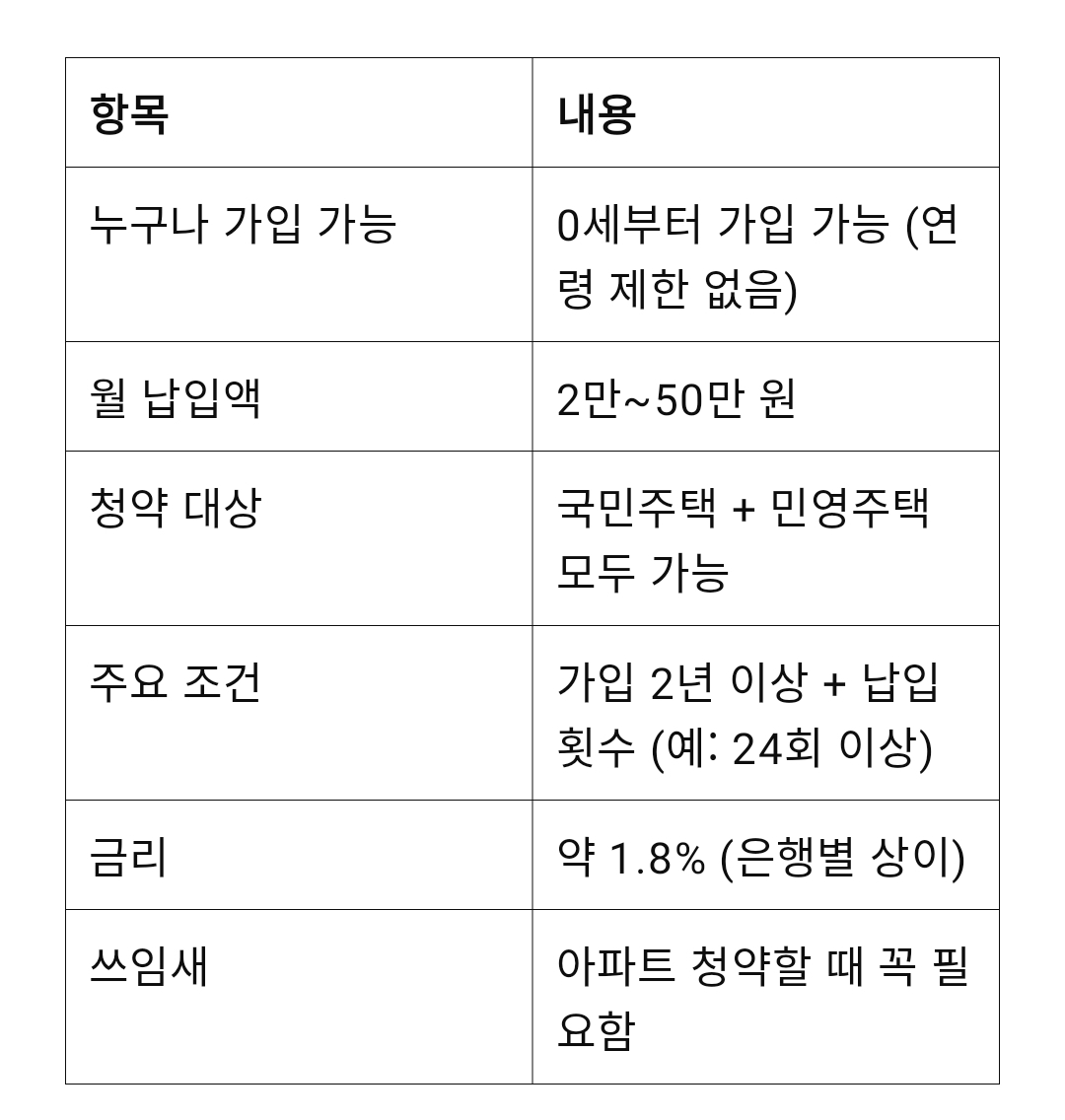 1. 주택청약종합저축 (청약통장)