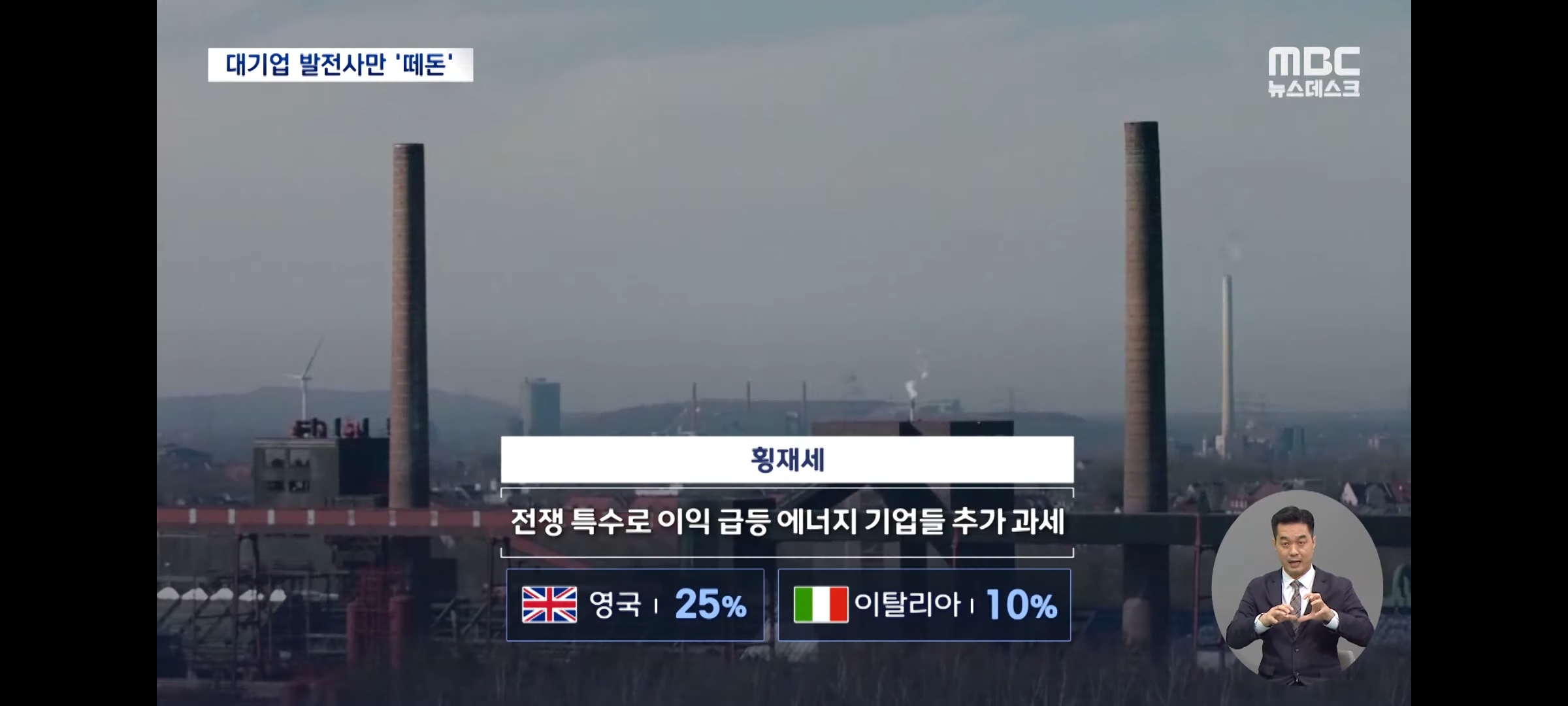 이미 다른나라에서는 횡재세를 시행하고 있는곳이 있는데, 그돈으로 서민들의 경제를 돕는데 쓰고있다.
