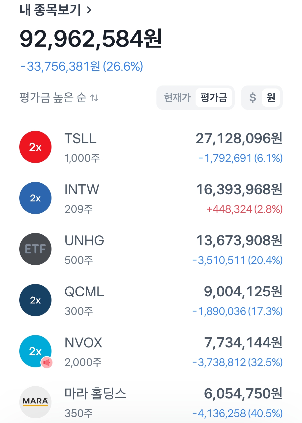 (참고: 주당 가격은 '현재 평가금액'을 '보유 주식 수'로 나누어 추정했습니다.)