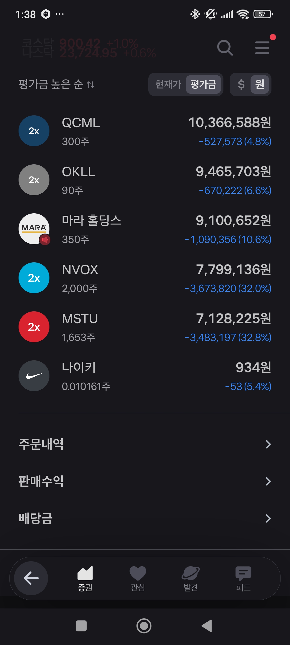 하락 종목: NVOX, MSTU, UNHG, MARA 등 전반적 약세
