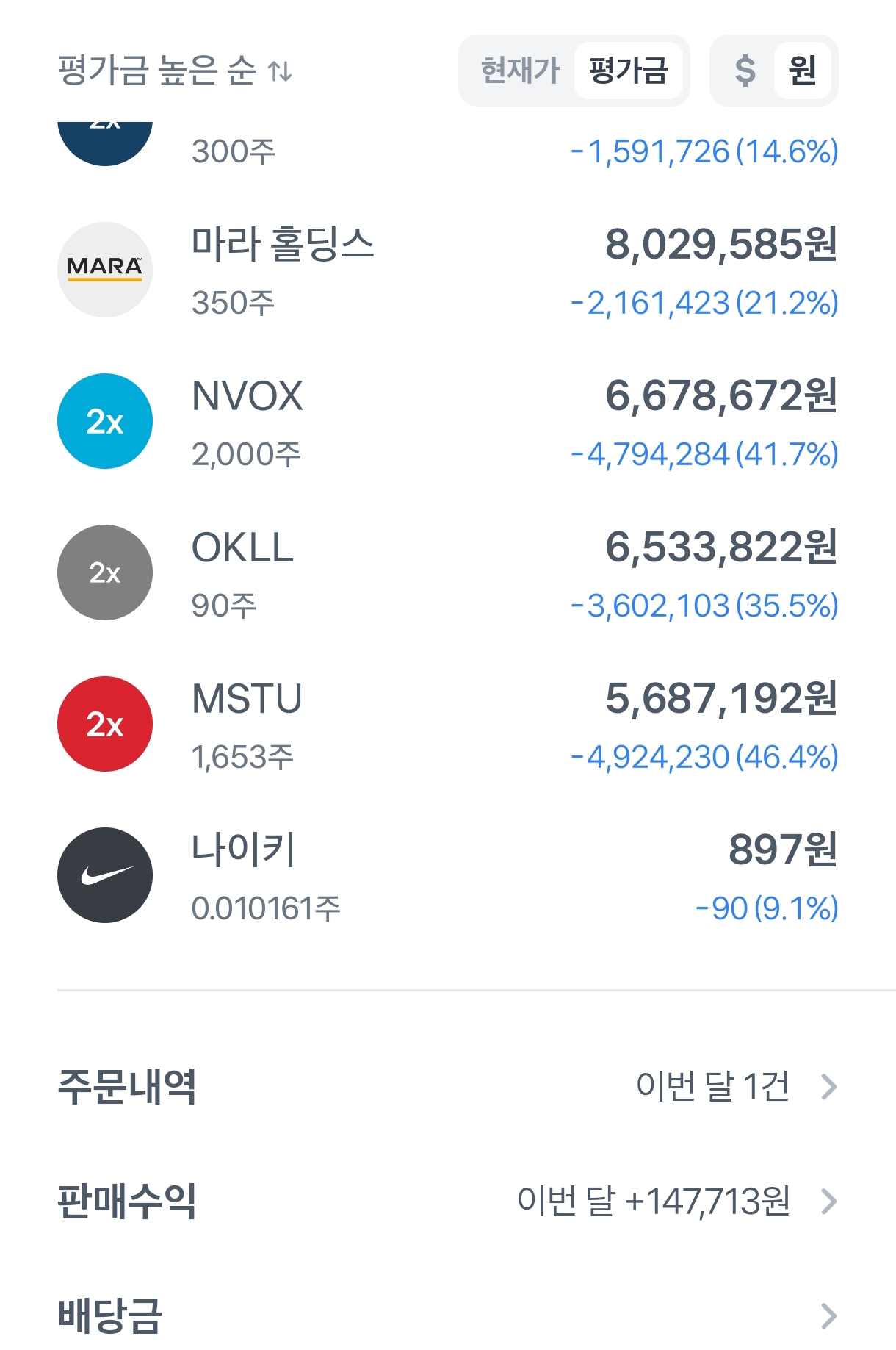 ​현재 보유 중인 주요 종목들의 현황입니다.