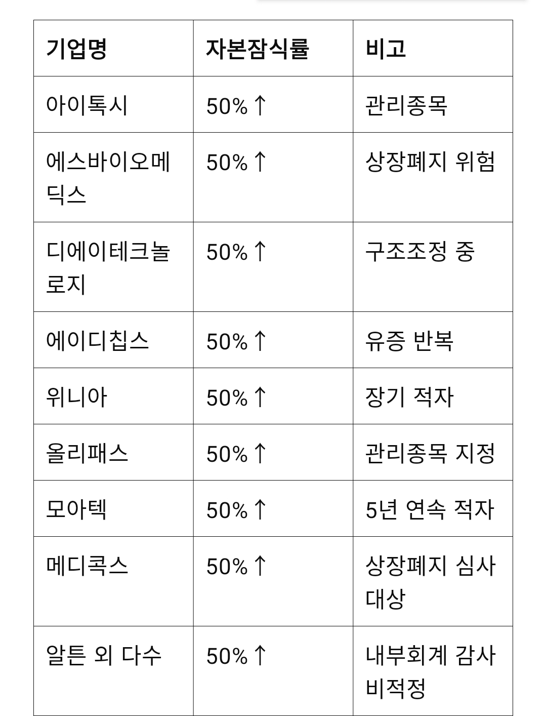 ㆍ2025년 3월 기준 자본잠식 기업 리스트