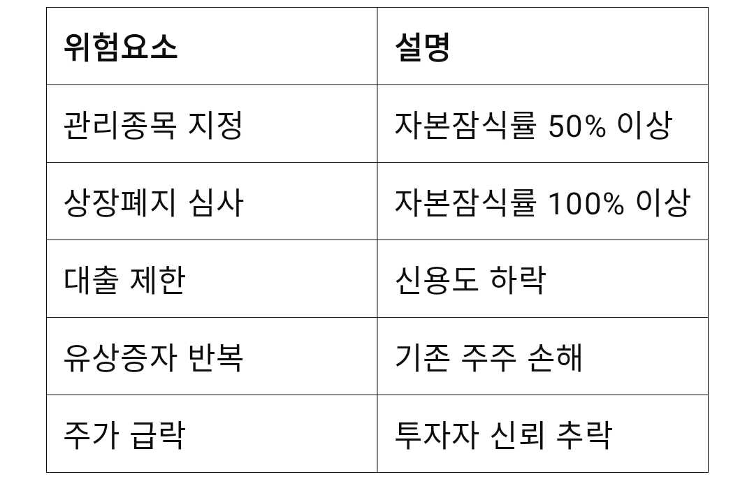 → 이 경우 완전잠식, 상장폐지 심사 대상이에요.