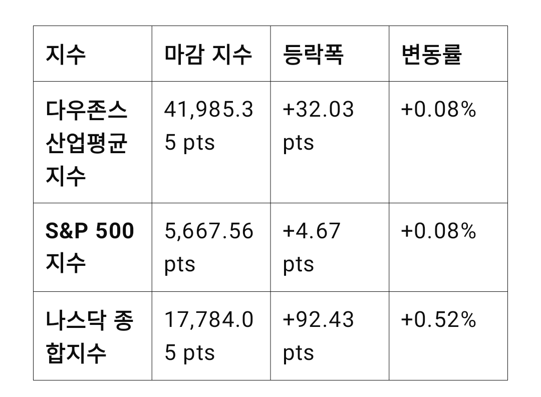 다우존스와 S&P500은 소폭 상승하며 강보합세를 보였고, 나스닥은 4주 연속 하락을 끊고 상승 전환에 성공했습니다.