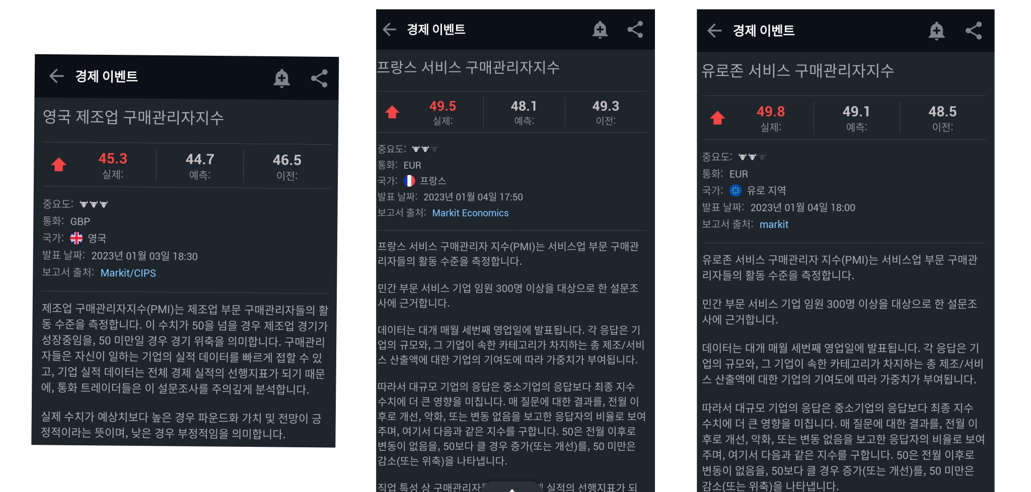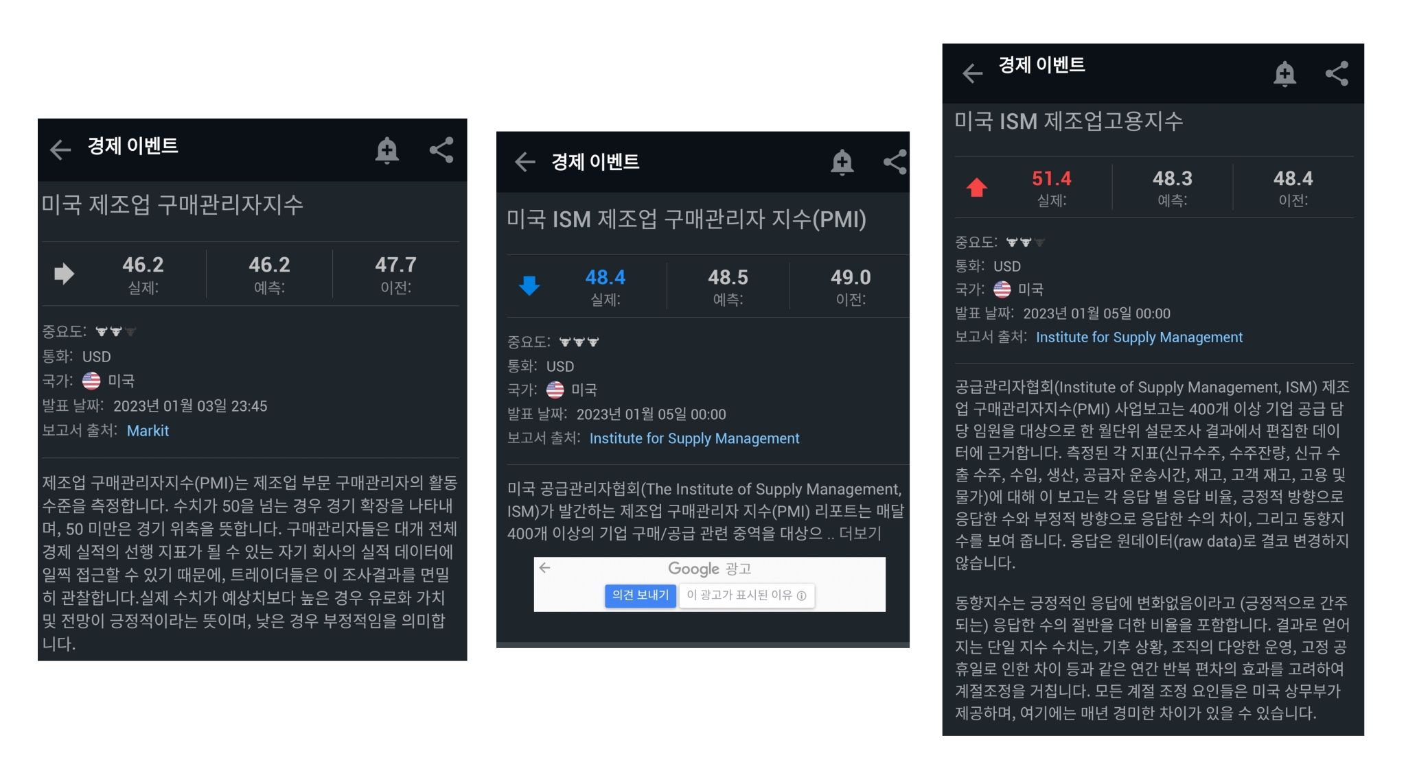 시장이 예상한 기대값보다는 높았지만 50이하이므로 경기침체를 예상!