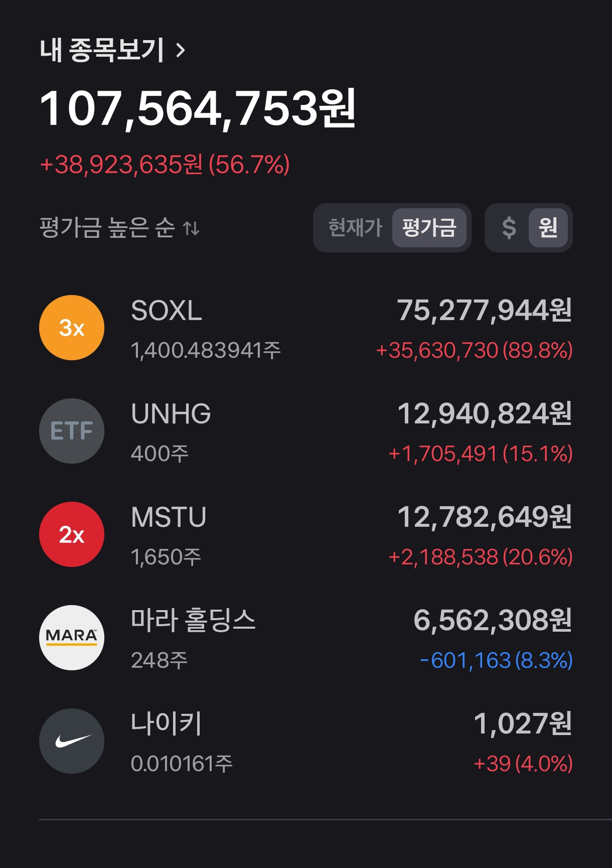 총 평가금액: 107,564,753원