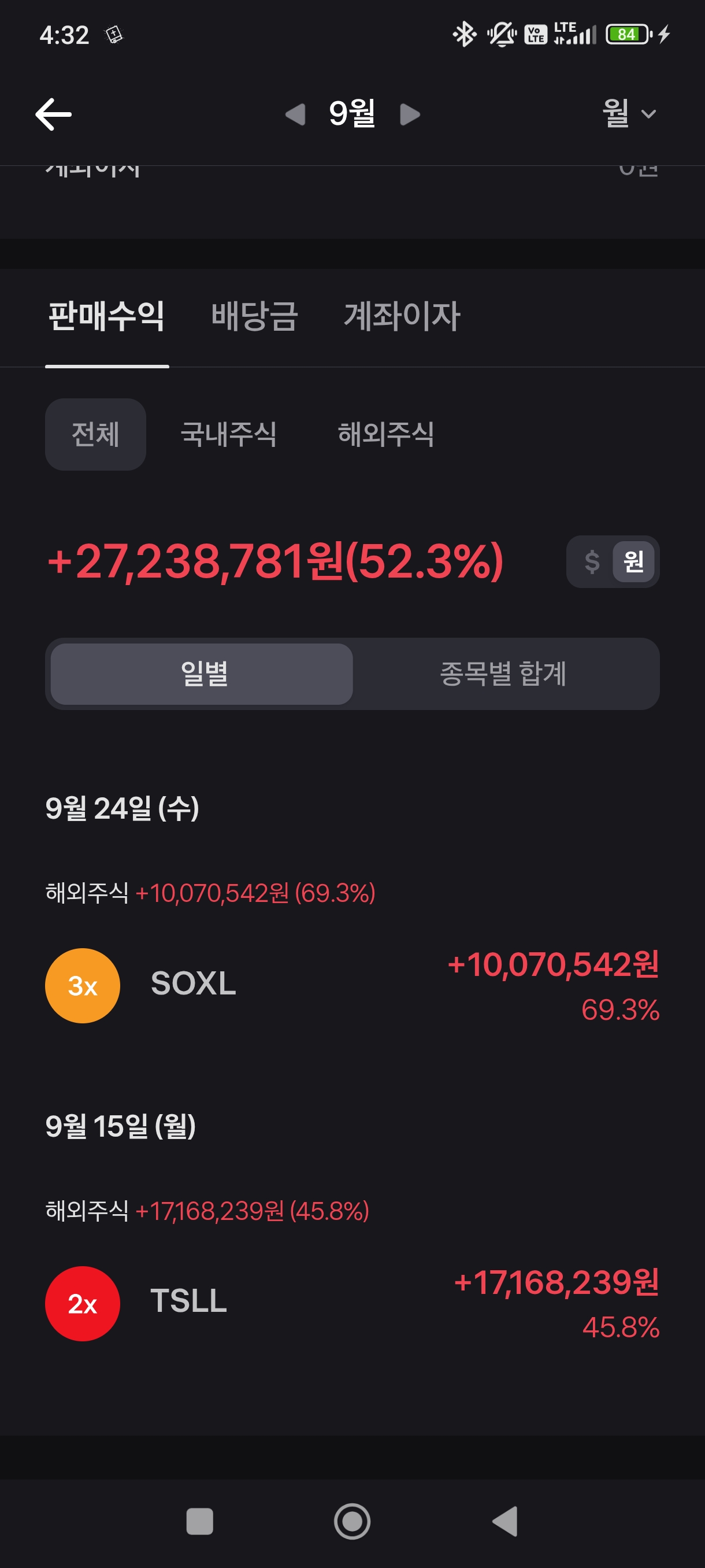 ㆍTSLL 매도 (9월 15일 기준) → +17,168,239원 (45.8%)