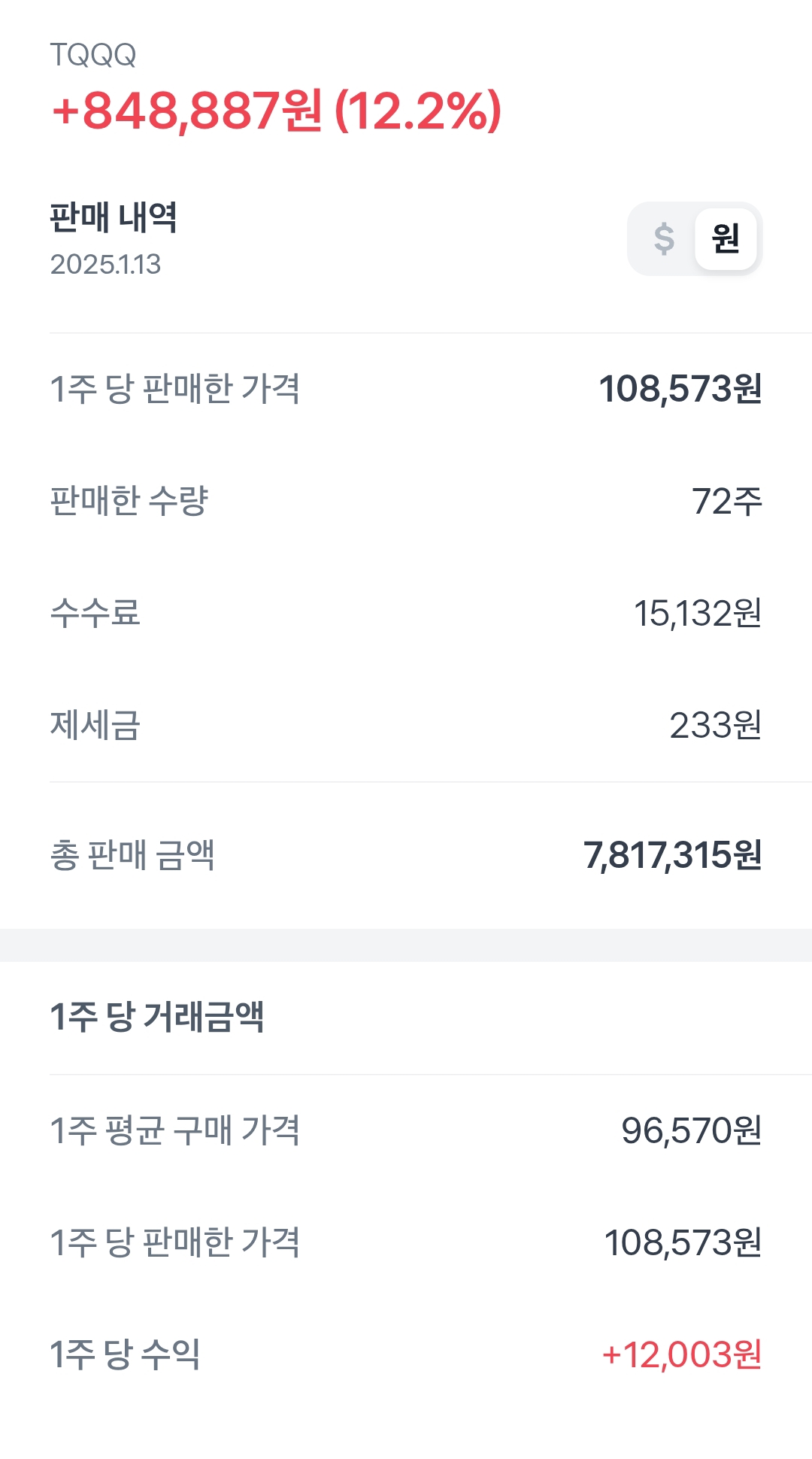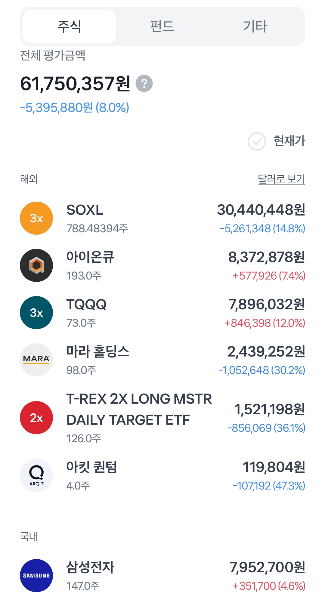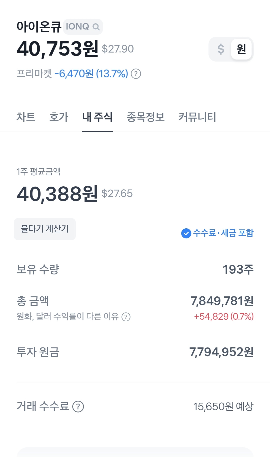 목표금액에 도달하지는 않았으나, 최근 급락한 양자주를 사기위해서 절반매도!