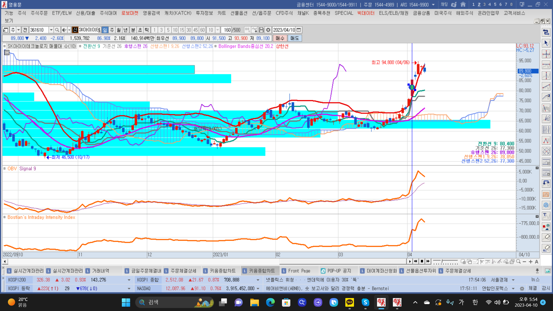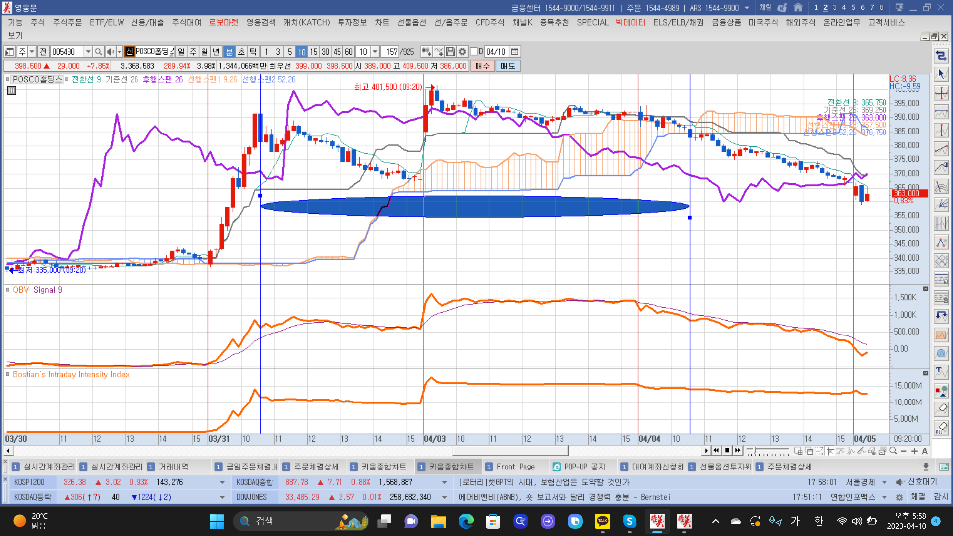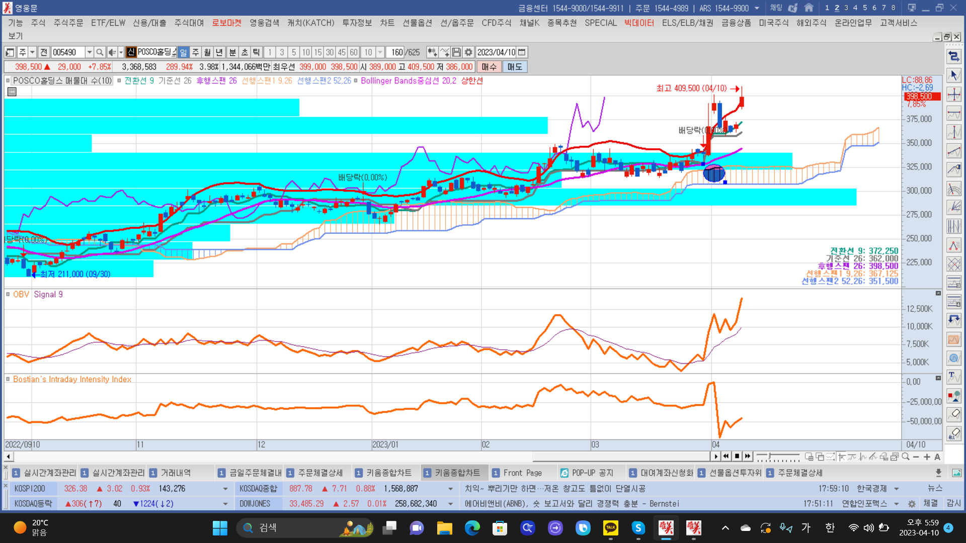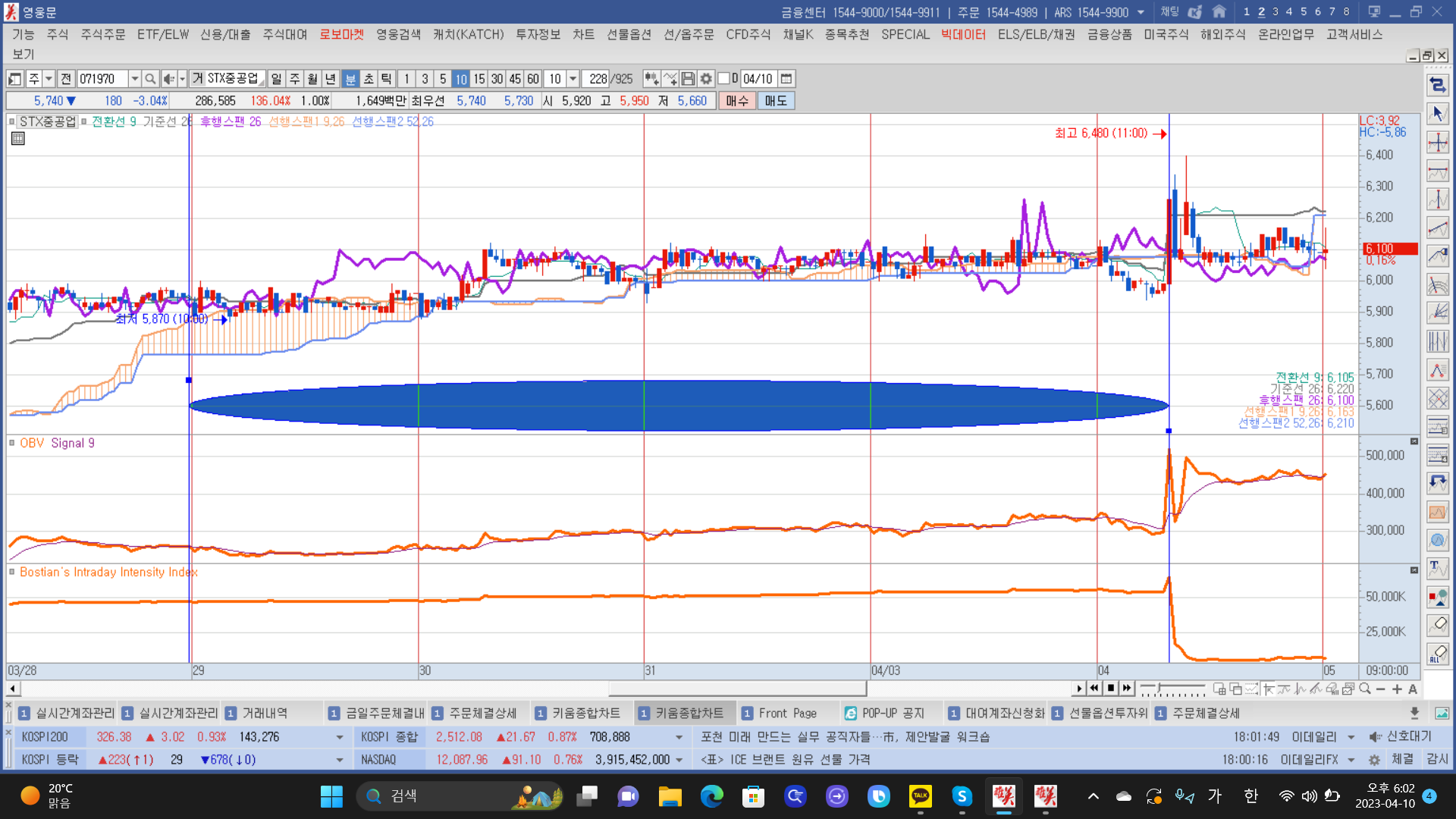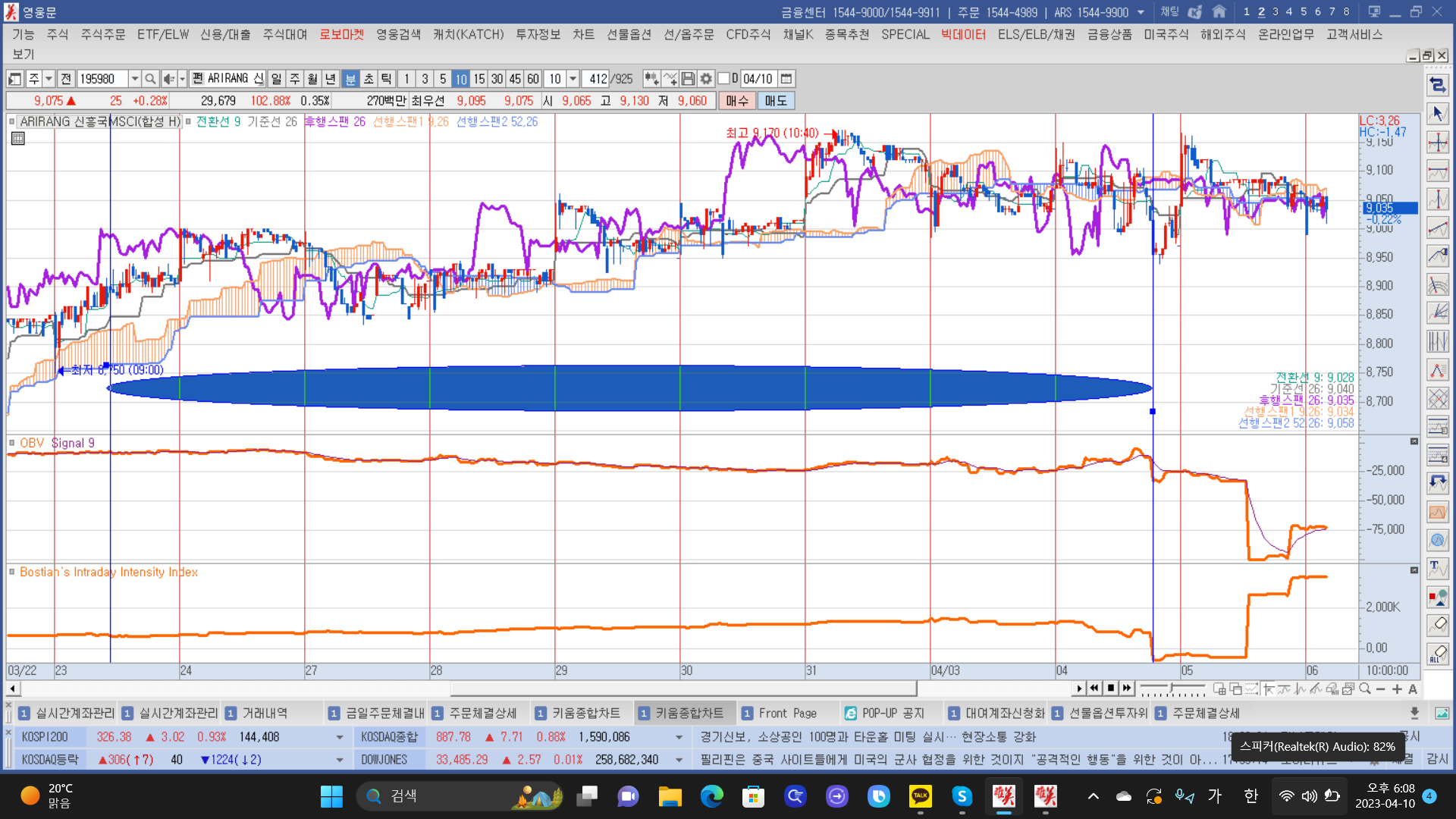 기준선 하락, 전환선상승, 10일신고가, obv골드크로스