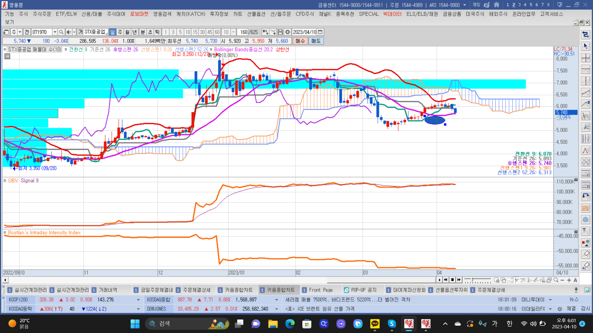 기준선꺽이고 전환선상승시점에서 매수진행하였으나,