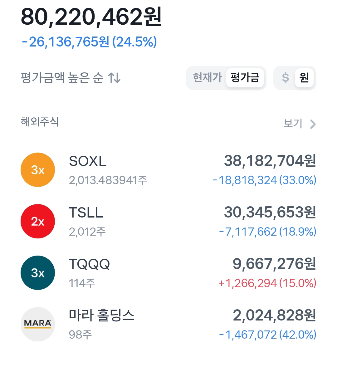 SOXL과 TQQQ가 포트폴리오 상승을 이끌었다.