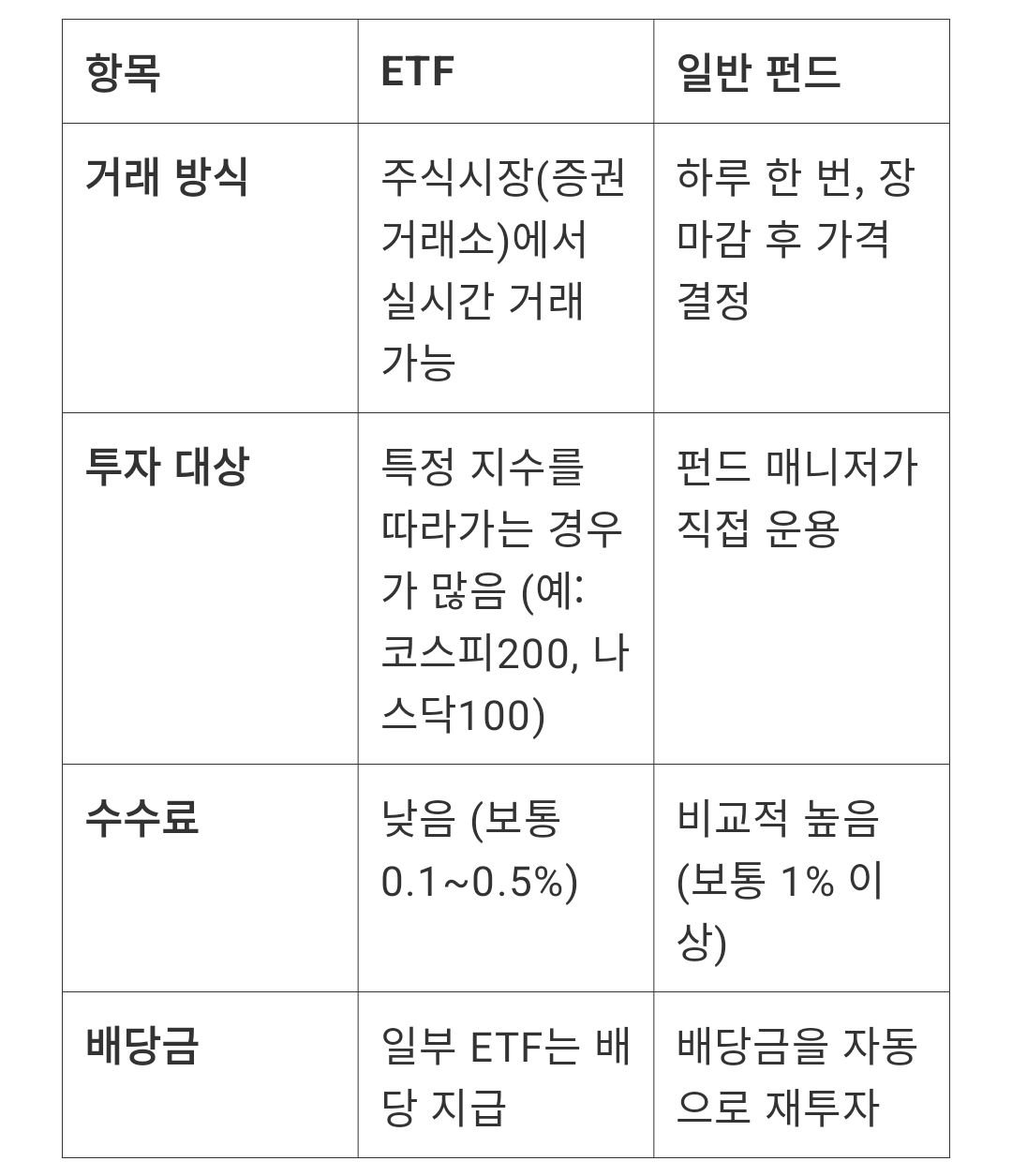 일반 펀드는 보통 1% 이상의 운용 수수료가 있지만, ETF는 0.1~0.5% 수준으로 훨씬 저렴합니다.