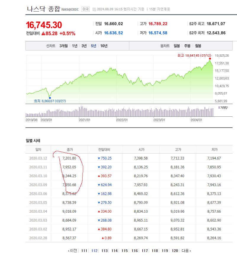 나스닥이 급격히 떨어지다가 3.10일부터 조금씩 상승궤도를 달리는 것을 볼수있는데,