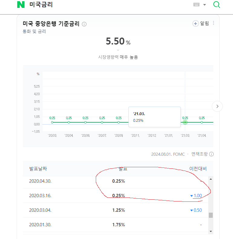 이때 무려 연준에서 100포인트나 되는 금리인하를 감행하였다.