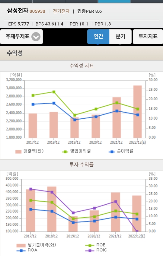 ROE를 꾸준히 10을 유지하는 기업은 정말 대단한기업이라고 할수있겠다.