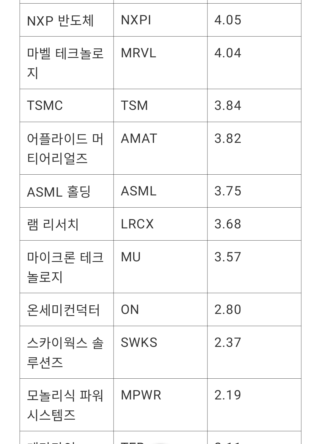 그럼 SOXL에는 어떤 기업들이 포함되어 있을까?