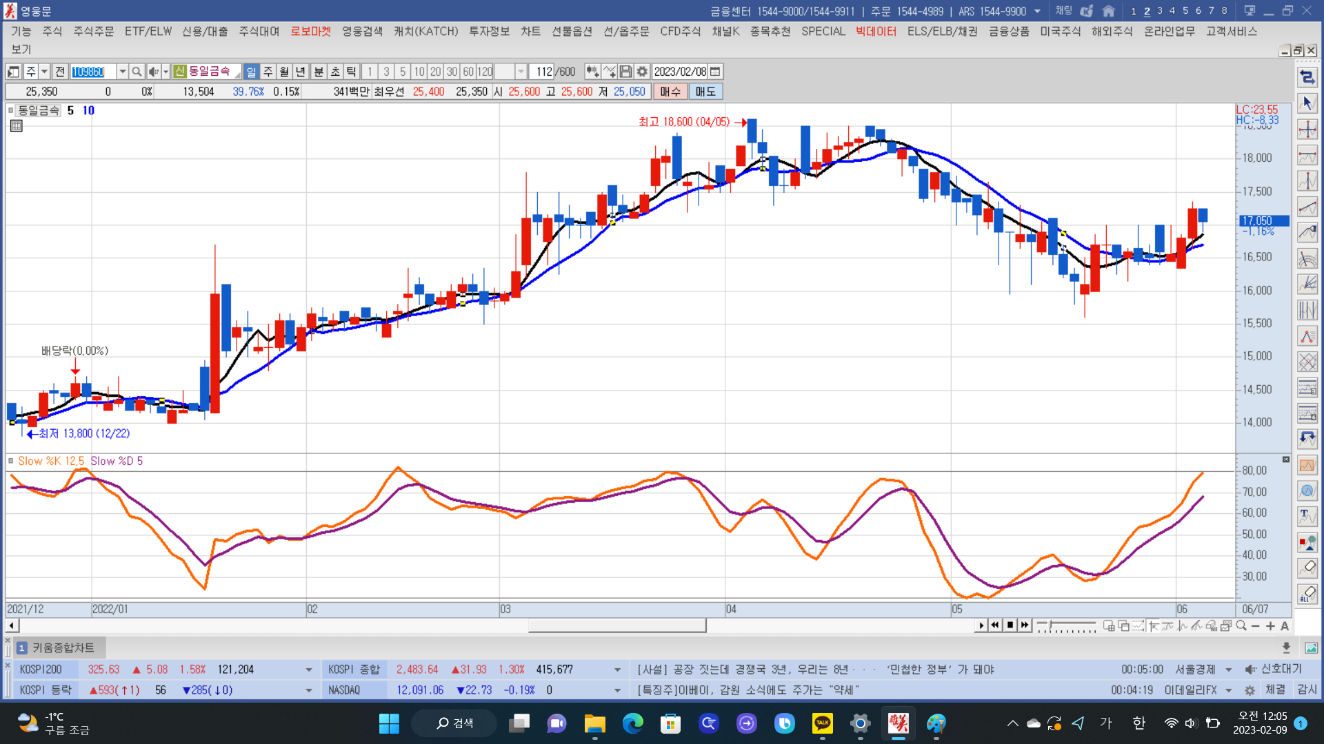 Stocastic의 두선은 10일이평과 5일이평과 비슷하다.