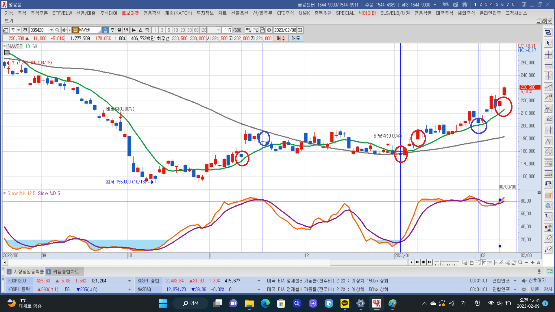 정배열일때는 침체이탈과 과열진입에서 매수포인트
